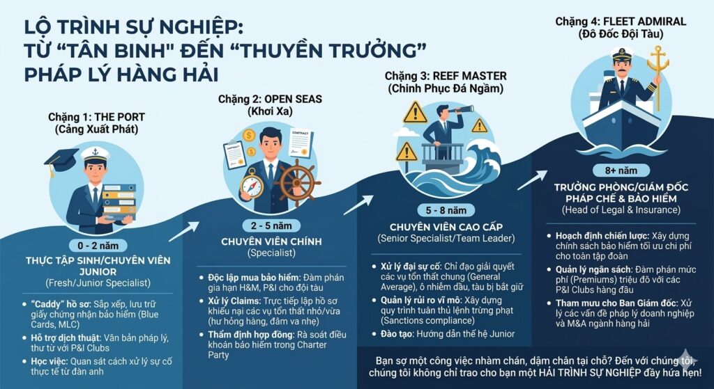 CHUYÊN VIÊN PHÁP CHẾ HÀNG HẢI – BẠN LÀ AI? Bước vào thế giới pháp lý hàng hải quốc tế cùng vị trí Chuyên viên pháp chế bảo hiểm hàng hảiBạn là người trẻ yêu thích luật, tư duy logic, môi trường quốc tế và muốn công việc của mình không chỉ nằm trên giấy […]